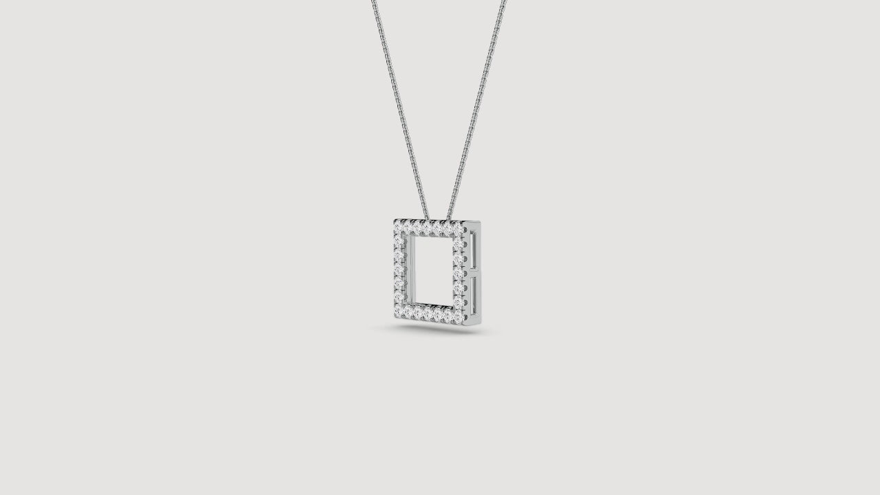 This elegant pendant features a square design adorned with sparkling diamonds, creating a timeless and sophisticated piece. The delicate frame and exquisite craftsmanship make it a versatile accessory that can be dressed up or down. Perfect for adding a touch of glamour to any outfit.