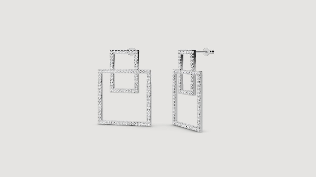 These playful earrings feature two interlinked squares, adding a touch of geometric flair to any outfit. The delicate diamond accents make them perfect for casual daytime looks. Pair them with jeans and a t-shirt for a chic and effortless style.