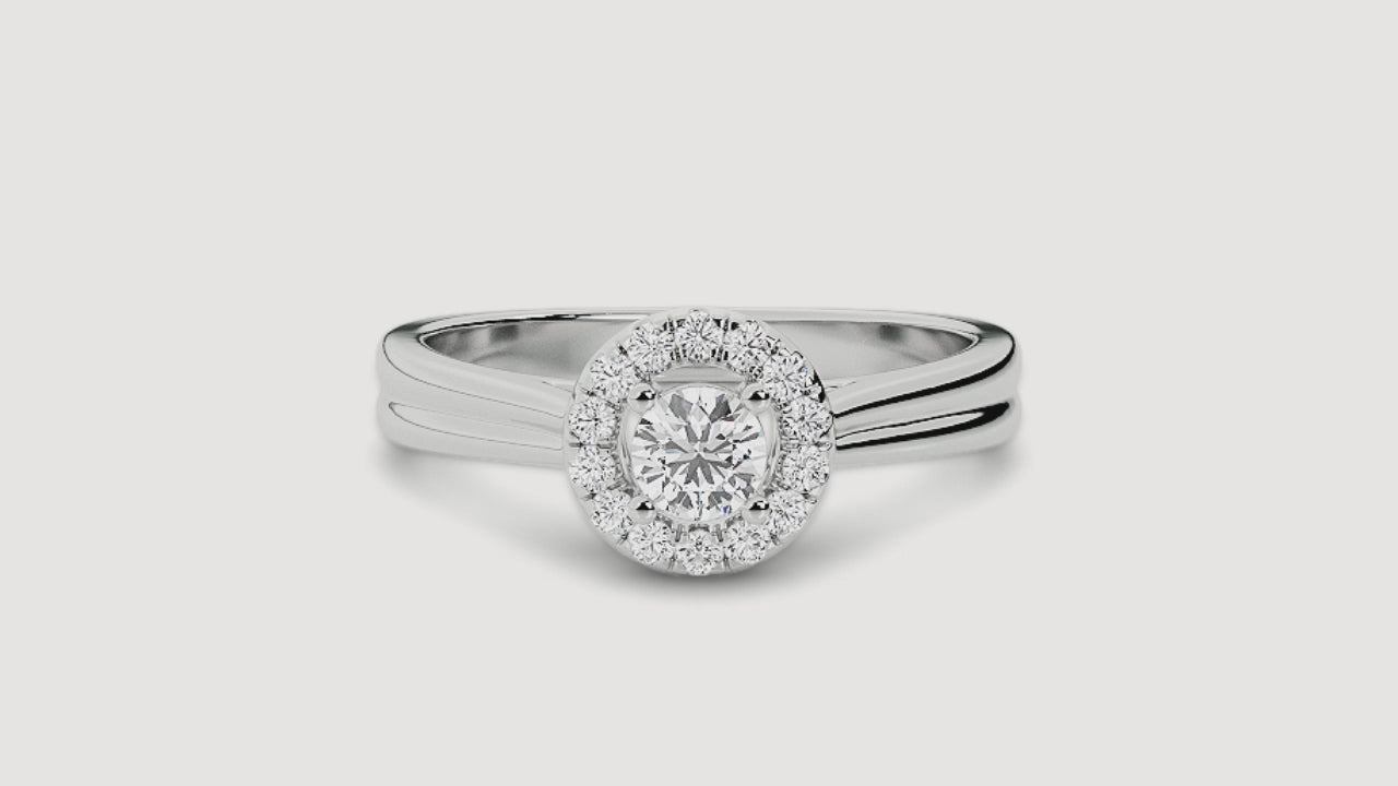 A timeless diamond ring with a halo setting, perfect for everyday wear. The delicate band and sparkling diamonds create a classic and elegant look.
