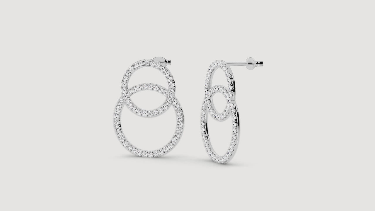 These minimalist stud earrings feature two interlocking circles, creating a modern and stylish look. The delicate diamond accents add a touch of sparkle without being too formal. Perfect for everyday wear, these earrings are a versatile and chic addition to any jewelry collection.