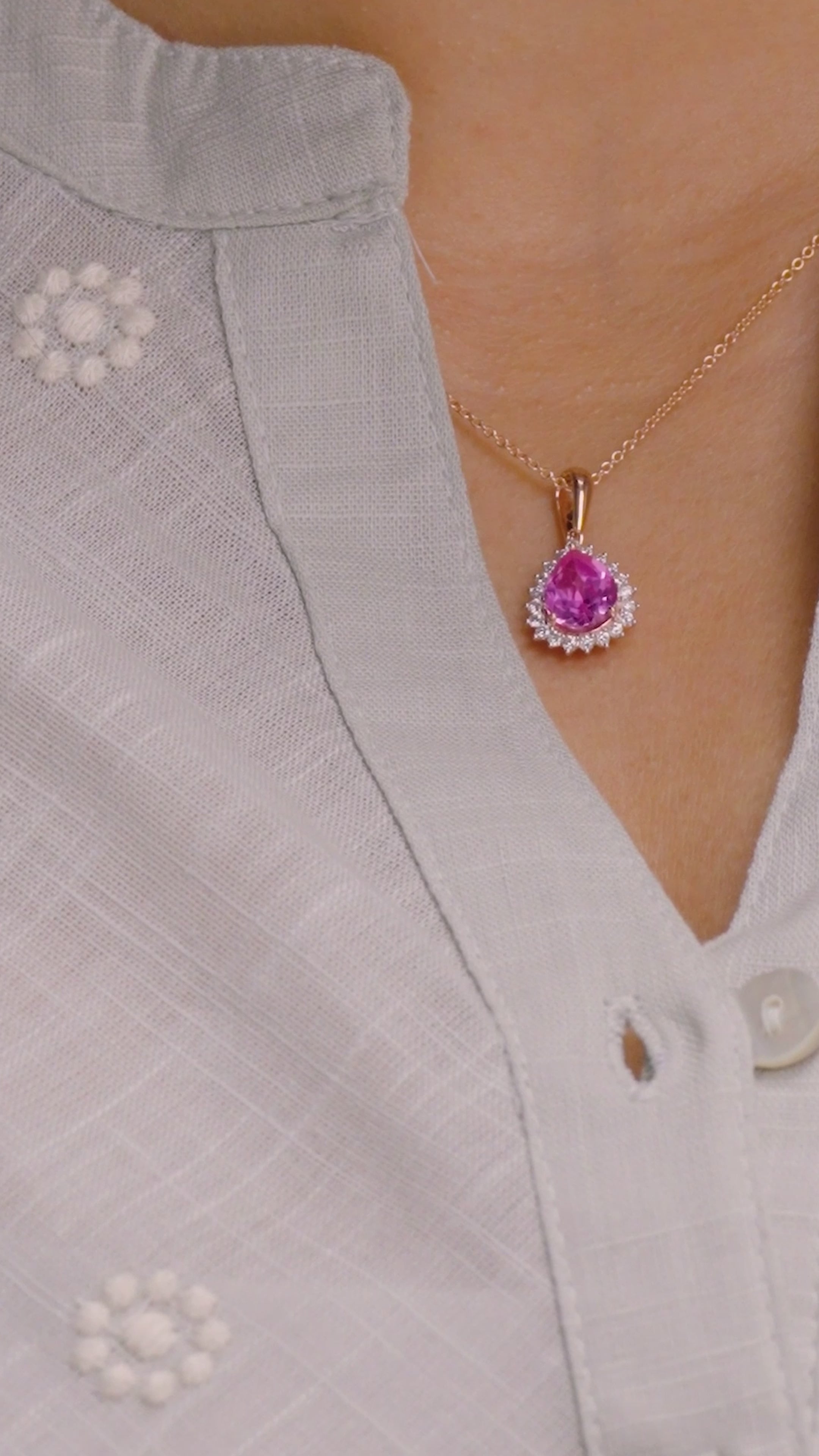 The pear shape is so chic, and the diamond halo adds just the right amount of sparkle.