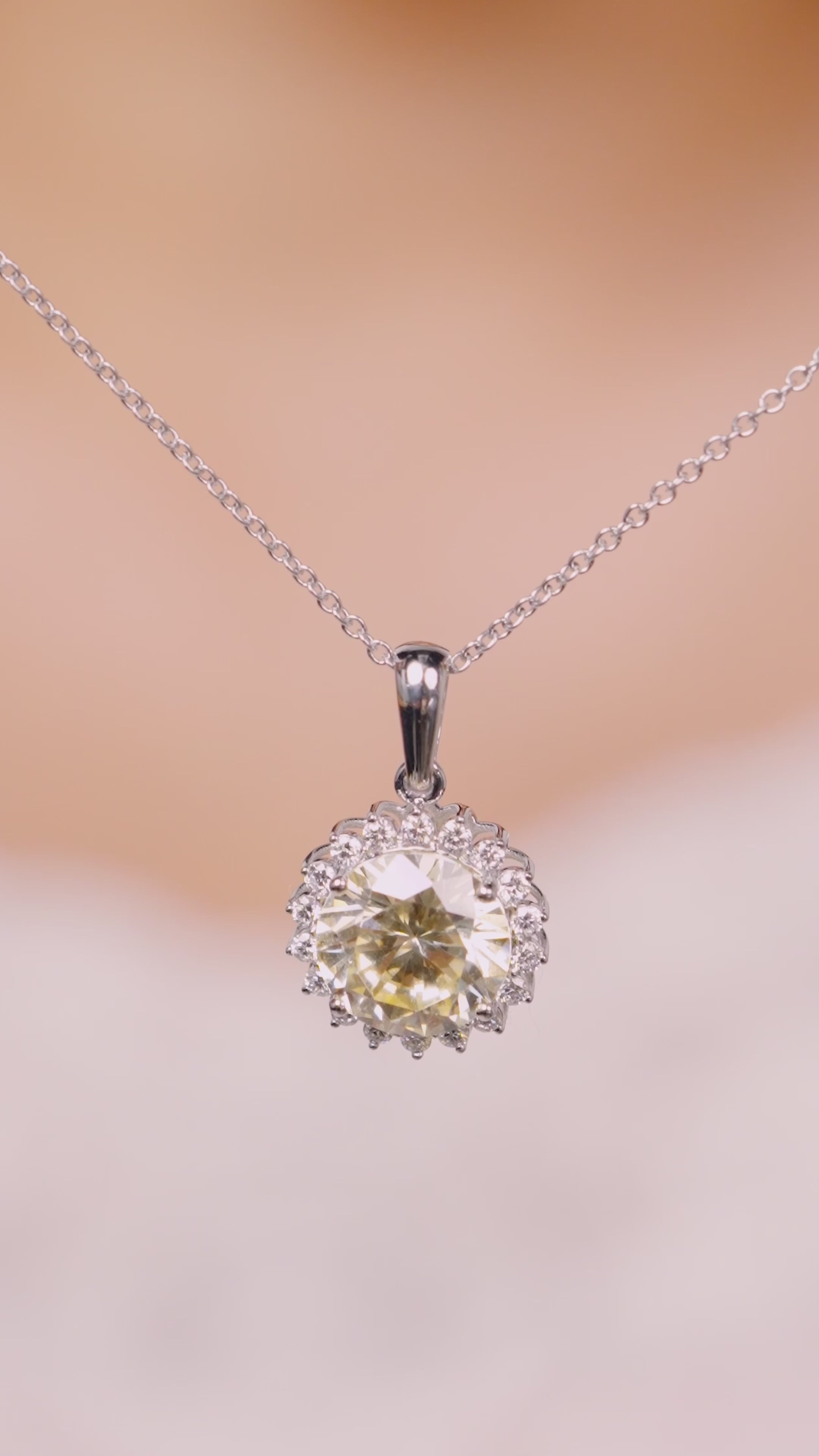 This stunning diamond pendant is pure elegance! The center stone sparkles like sunshine, surrounded by a delicate halo of smaller diamonds.